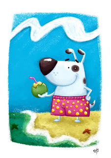Bilu correu pela praia, tomou um delicioso e inesquecível banho, deitou na areia, apreciou o céu azul, bebeu muita água de coco e observou os outros animais que estavam de férias por lá também.